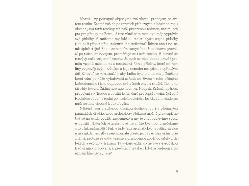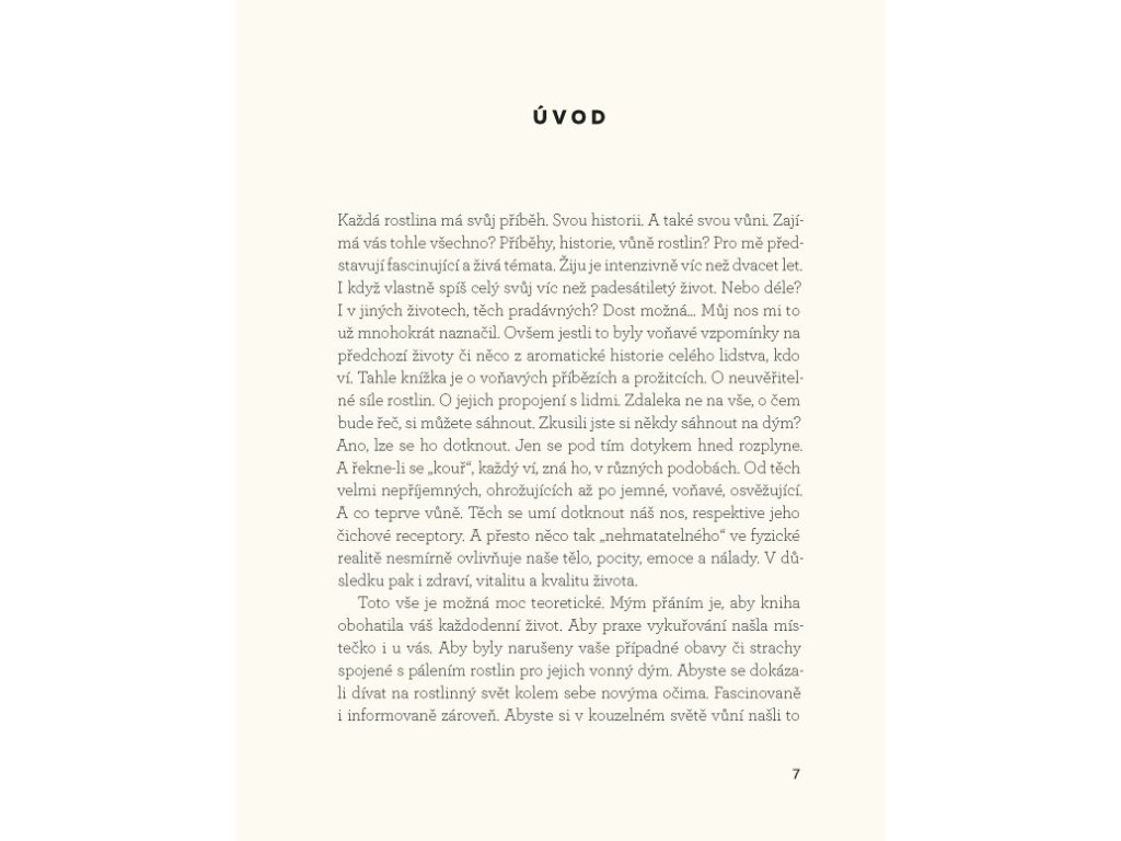 K vykuřovací praxi toho ve skutečnosti potřebujete jen velmi málo, a začnete-li s ním, dostanete velmi mnoho. Úžasné vlastnosti rostlin ještě víc obohatí váš život a stanou se z nich vaši dobří přátelé. Kniha maximálně vychází z praxe, informace a návody, které přináší, jsou přizpůsobeny našemu současnému životu i obtížím, které zpravidla řešíme. Velkou péči autorka věnuje eliminaci problémů, které mohou při vykuřování nastat, představení vykuřovadel používaných tradičně v našich končinách a prohloubení vztahu k přírodě a jejím zdrojům.