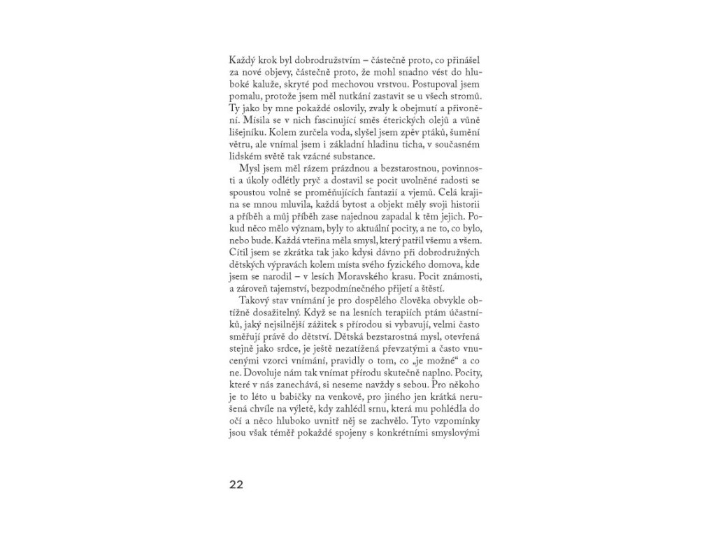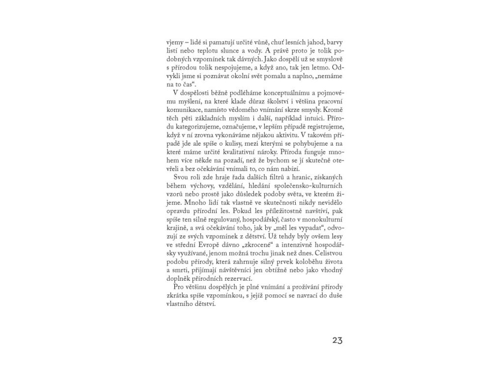 Češi jsou známí tím, že do lesa chodí rádi, třeba sbírat houby. Ve skutečnosti však mnozí z nás vnímali vztah s přírodou naposledy v dětství, kdy jsme si v ní dokázali uvolněně hrát a tvořit. Tuto radost a štěstí však můžeme zažívat i jako dospělí, začneme-li se s přírodou propojovat skrze své smysly.