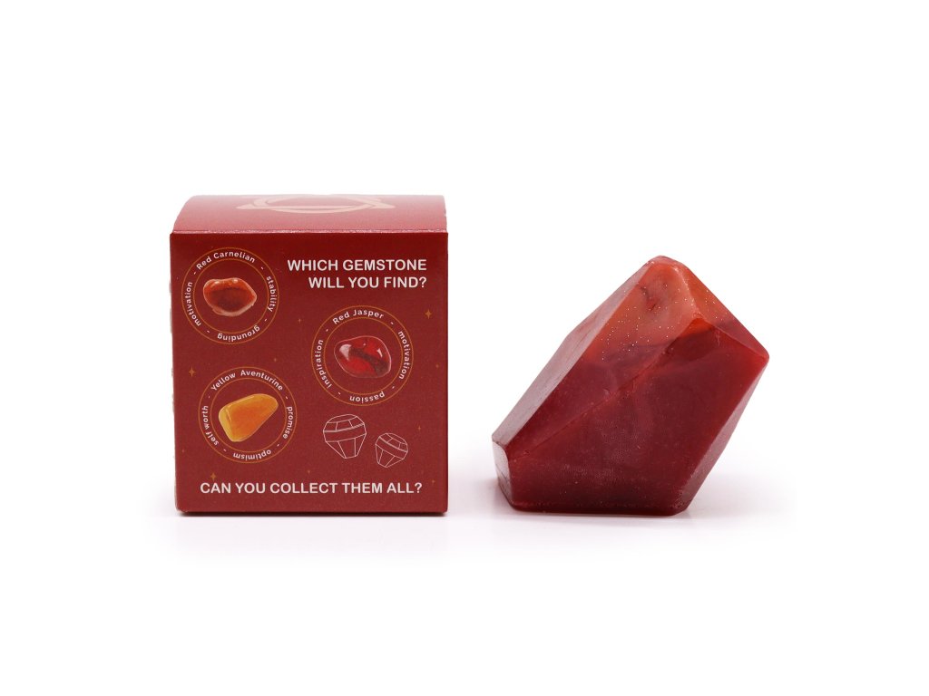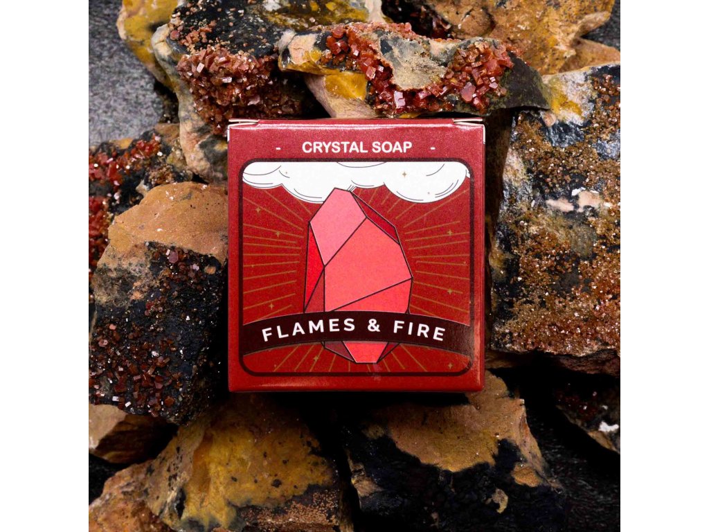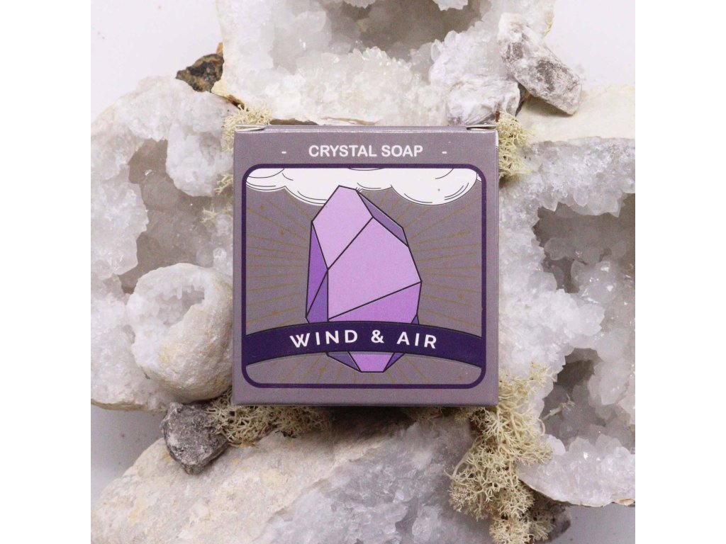 Ručně vyráběné glycerinové mýdlo obohacené esenciálními oleji, hmotnost cca 113 g. Dostupné ve variantách Země 🌍, Oheň 🔥, Voda 💧, Vzduch 🌬️🌀; každé mýdlo obsahuje náhodně jeden krystal (heliotrop/zelený avanturín/mechový achát; karneol/červený jaspis/žlutý avanturín; růženín/fancy jaspis/černý achát; ametyst/bílý avanturín/čirý křemen). -