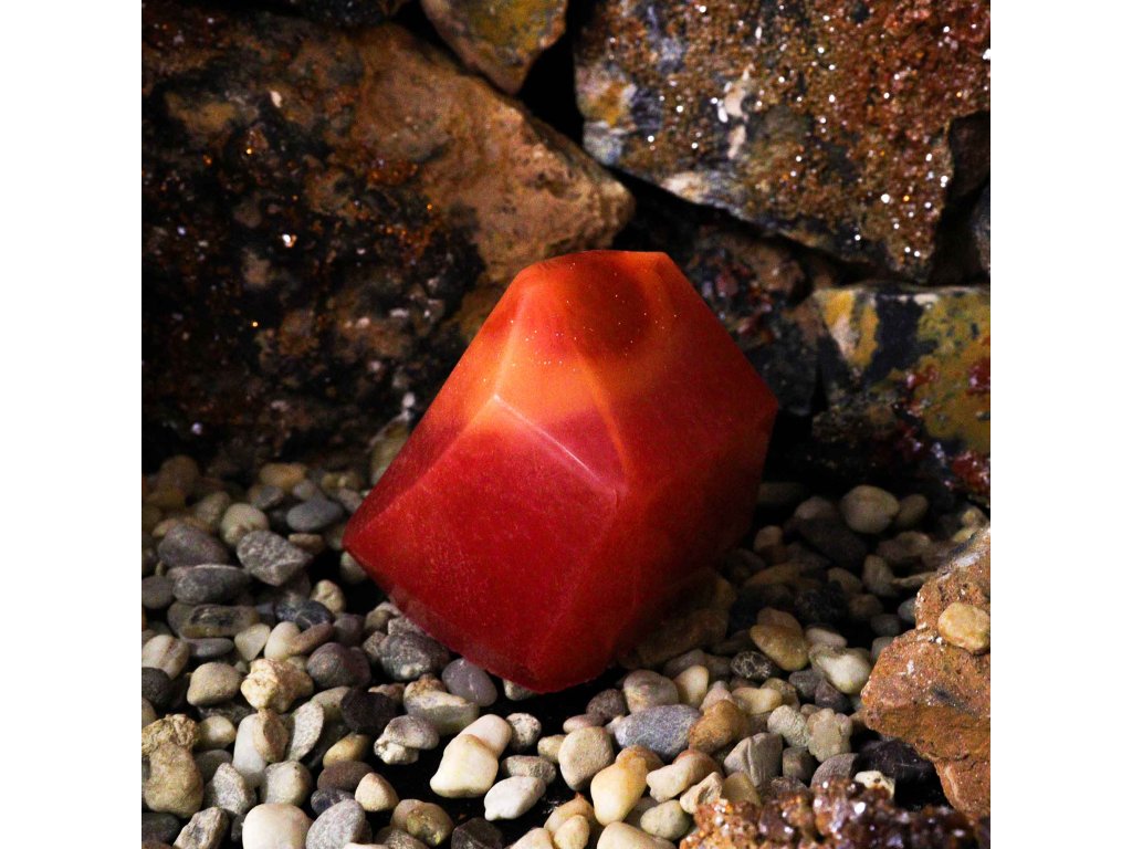 Oheň 🔥 – Teplá, kořeněná vůně pepře, bergamotu a mandarinky s květinovým srdcem pomerančového květu, tiramisu a jasmínu a sladkým základem vanilky, dřeva a tonky. Krystal uvnitř je buď karneol, červený jaspis nebo žlutý avanturín, které podporují vášeň, energii a kreativitu.