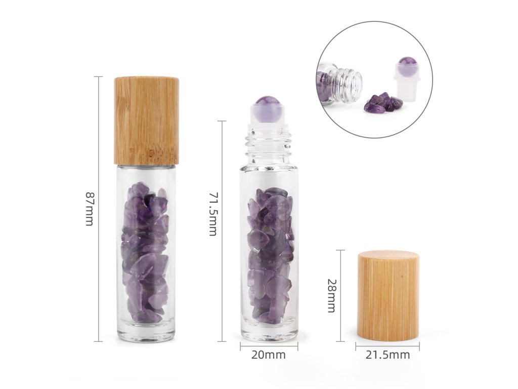 Spojte účinky aromaterapie s jemnou silou přírodních krystalů. Elegantní roll-on flakon s krystalovou kuličkou a krystaly uvnitř lahvičky vám umožní vytvořit si osobní směs, která vás podpoří přesně tam, kde potřebujete – ať už jako přírodní parfém, nebo jako cílená péče o pokožku.