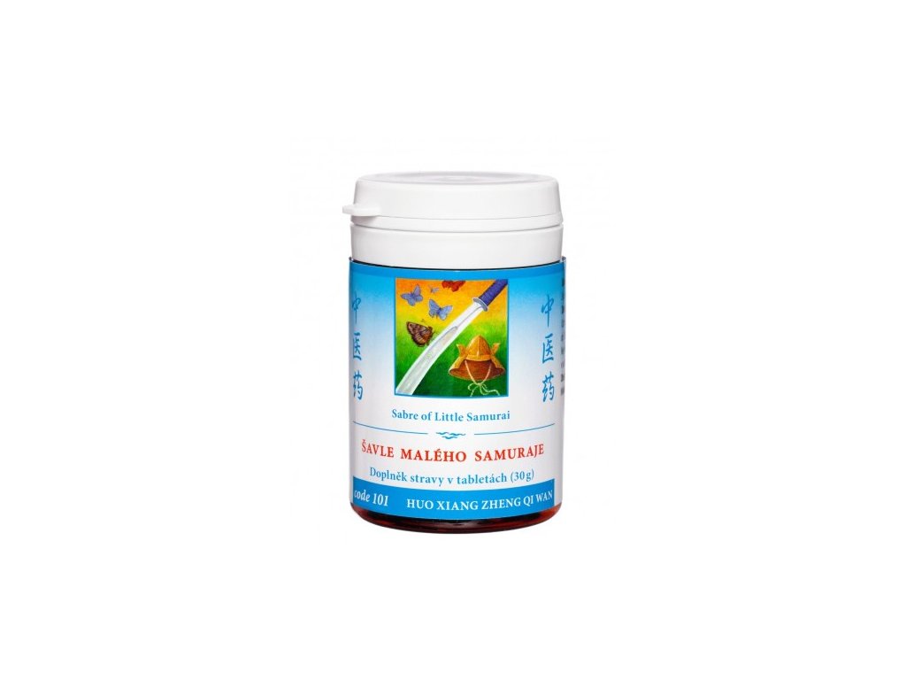 Z hlediska tradiční čínské medicíny se Šavle malého samuraje používá při stavech akutních průjmů od jara do podzimu, obzvláště pak sezónních, kupř. v období babího léta (srpen, září), kdy je slezina PI nejvíce oslabena vnitřní vlhkostí SHI. Rovněž při tzv. cestovatelských průjmech při změně stravy a podnebí, stejně tak při určitém typu zvracení rodiček v těhotenství. Účinek bylin ve směsi spočívá v odstranění vlhka SHI a hlenu TAN z břišní oblasti, úpravě zažívání a harmonizaci organizmu.
