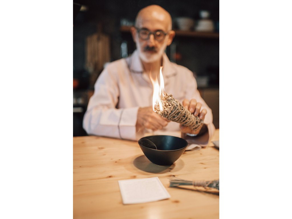 ✨ Použití: Zapalte konec svazku, nechte krátce rozhořet a sfoukněte plamen. Nechte dým jemně stoupat a veďte ho kolem těla, prostoru nebo předmětu, který chcete očistit. Po použití bezpečně uhaste v misce s pískem nebo solí. Pokud plánujete další použití, nehaste ve vodě. Při likvidaci zbytku jej nejprve namočte, aby se zamezilo doutnání.