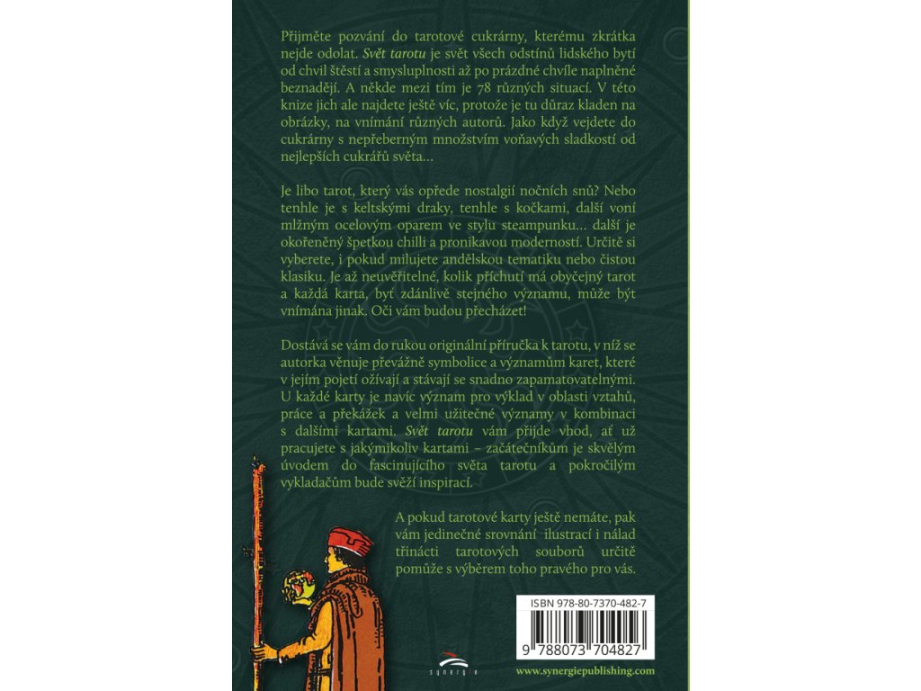Přijměte pozvání do Tarotové cukrárny, kterému zkrátka nejde odolat. Svět Tarotu je svět všech odstínů lidského bytí od chvil štěstí a smysluplnosti až po prázdné chvíle naplněné beznadějí. A někde mezi tím je 78 různých situací. V této knize jich ale najdete ještě víc, protože je tu důraz kladen na obrázky, na vnímání různých autorů. Jako když vejdete do cukrárny s nepřeberným množstvím voňavých sladkostí od nejlepších cukrářů světa…