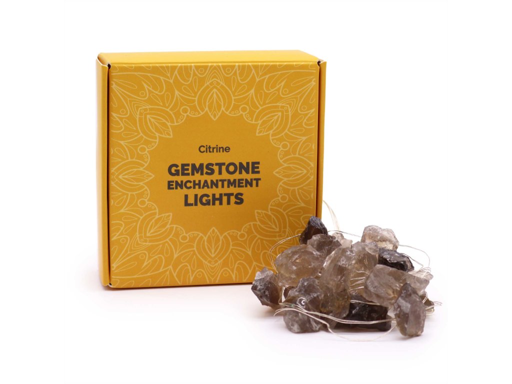Girlanda s citrínem rozjasní prostor radostí, optimismem a životní energií. Je to sluneční kámen, který zvyšuje sebevědomí, podporuje tvořivost a hojnost (nejen finanční😉).