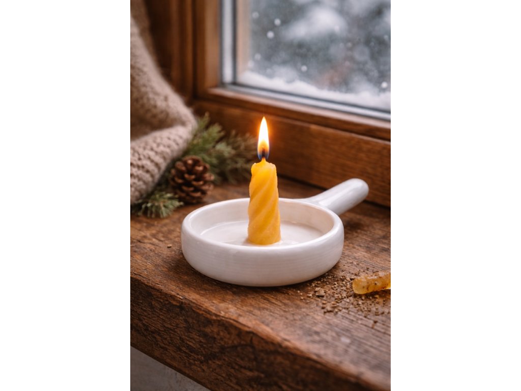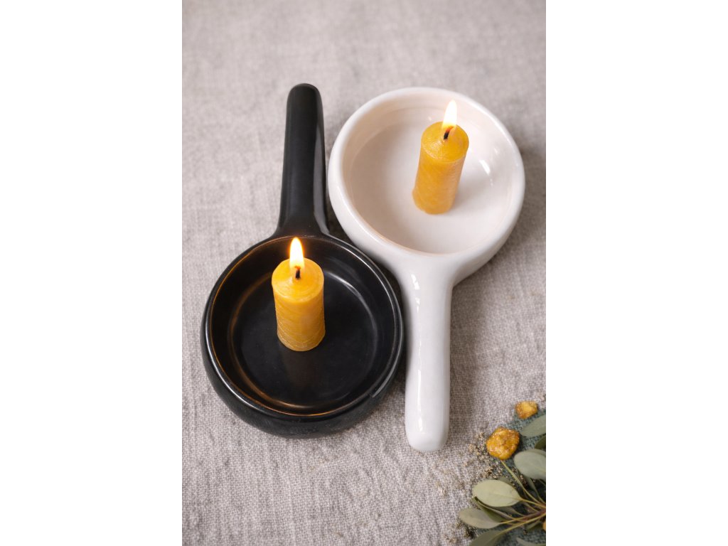 🌿 Keramický svícen v jednoduchém a nadčasovém designu je vytvořený pro chvíle ztišení, vědomé práce se záměrem i každodenní zapálení svíčky. Minimalistická mistička s praktickým držadlem působí čistě, elegantně a zároveň stabilně.