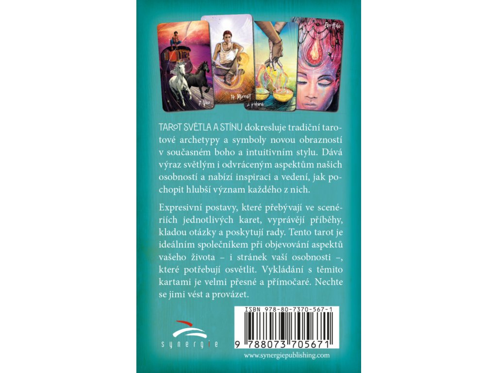 Tarot světla a stínu dokresluje tradiční tarotové archetypy a symboly novou obrazností v současném boho a intuitivním stylu. Dává výraz světlým i odvráceným aspektům našich osobností a nabízí inspiraci a vedení, jak pochopit hlubší význam každého z nich. Expresivní postavy, které přebývají ve scenériích jednotlivých karet, vyprávějí příběhy, kladou otázky a poskytují rady.